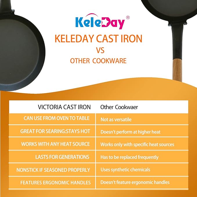 - 【High Quality】 The non stick frying pans seasoned with 100% vegetable oil, non-stick and healthier. The cast iron material conducts heat faster and more evenly, ensuring rapid heating and making cooking food easier