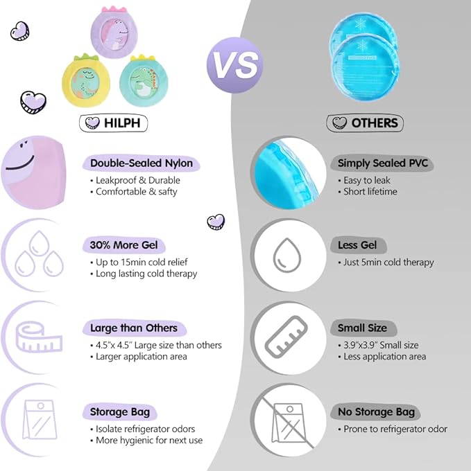 - SAFETY & DURABLE: Hilph kids ice packs are made with medical grade gel & 100% BPA free materials which are completely safe for your child's skin. Non toxic and safe for sensitive skin. Thick medical grade plastic is lined and sealed to prevent leakage or puncture.