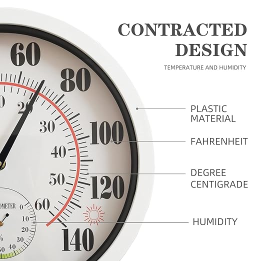 - Adaptable: Outdoor thermometer waterproof use plastic bottom case and acrylic dial, temperature range is -40 to 60°C, -40 to 140°F, adapt to all weather and climate