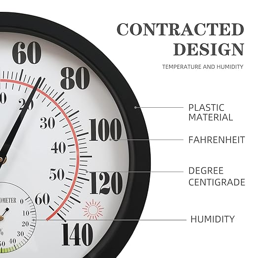 - Adaptable: Outdoor thermometer waterproof use plastic bottom case and acrylic dial, temperature range is -40 to 60°C, -40 to 140°F, adapt to all weather and climate