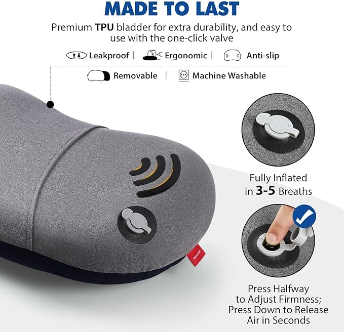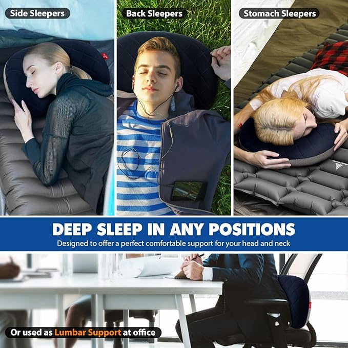 - ššš šššš ššš ššššššš š šš ššš šššššššš: No matter which types of sleepers you are, Hikenture camping pillows for sleeping with the adjustable firmness were designed for your sleep position! Thanks to the patented one-click valve, our blow up pillow only takes 3-5 breaths to fully inflate. Press down the black button of the valve to release air in seconds, and press halfway to adjust the hiking pillow to your favorite firmness.
