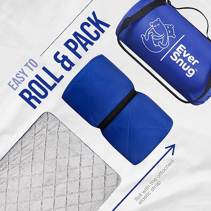- SPACIOUS YET LIGHTWEIGHT AND PORTABLE: At 85” x 55”, this extra-large blanket comfortably covers two adults while remaining lightweight. EverSnug’s convenient carry straps and a secure zipped pocket let you store essentials, making it easy to bring warmth and convenience wherever you go.
