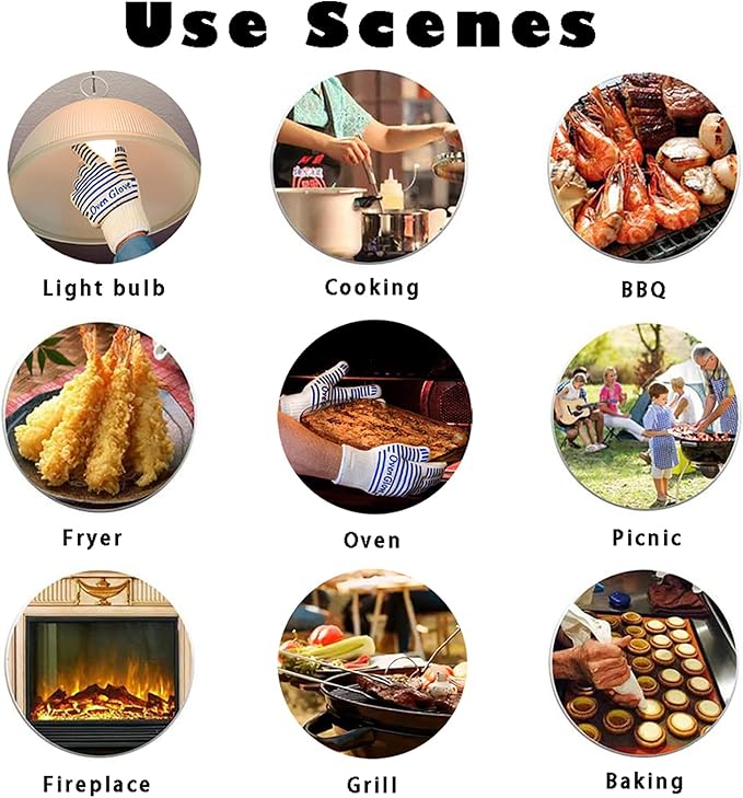 - MULTIPURPOSE BBQ GLOVES: The cooking gloves are perfect for grilling, baking, smoking, welding, cutting, woodworking, bonfires, fireplace and much more! If you encounter any problems during the purchase, you can contact us at any time, and we will give you a satisfactory answer in a timely manner.