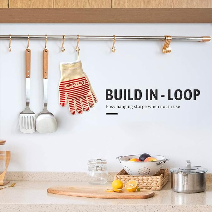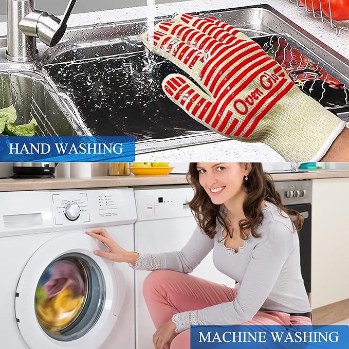 - EASY TO CLEAN & STORE: Our grilling gloves are suitable for machine washing and hand washing without affecting their thermal insulation effect. Feature with hook design which makes it easy for you to store anywhere.