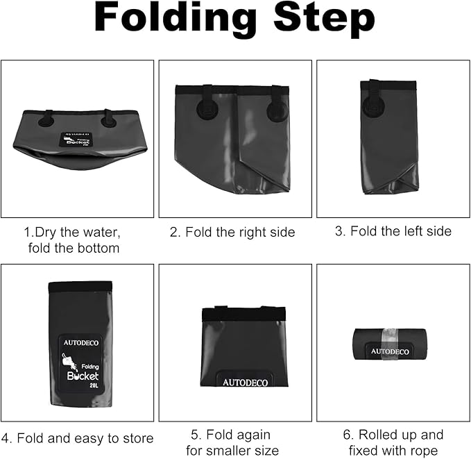 - Multi-purpose Fold Bucket: This AUTODECO Collapsible bucket is ideal for camping, fishing, traveling, boating, hiking, gardening, picnic, outdoor activities, daily use and car washing. It can be used as fish bucket, ice bucket, fruits and veggies basket, travel basin, coaches bucket for baseball, etc