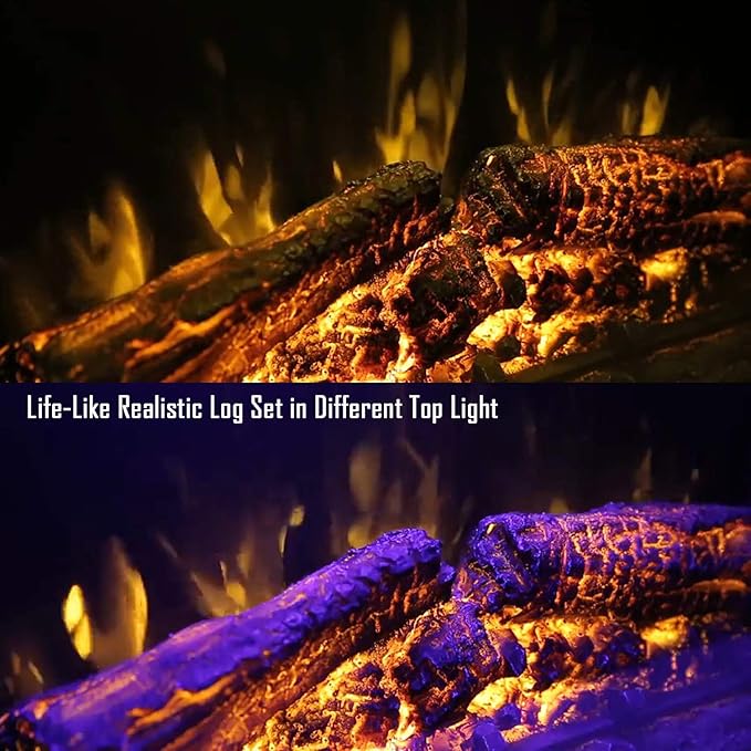 - Western Modern Fireplace with Speaker: Realistic dancing flames and burning log effect, built-in speaker simulating the sound of charcoal cracking, give you a real fireplace-experience. Give your room a dreamlike ambiance.