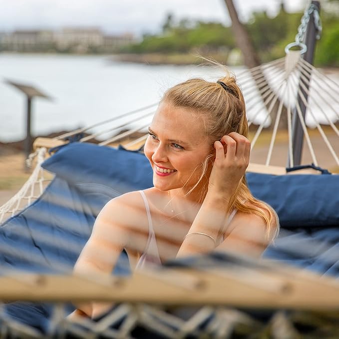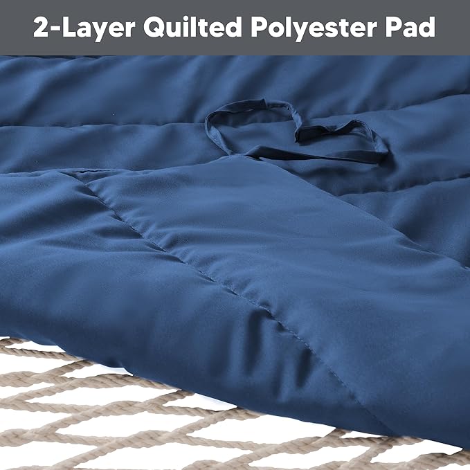 SUNCREAT Double Portable Rope Hammock with Stand Included, Outdoor Two Person Hammock with Polyester Pad, Navy