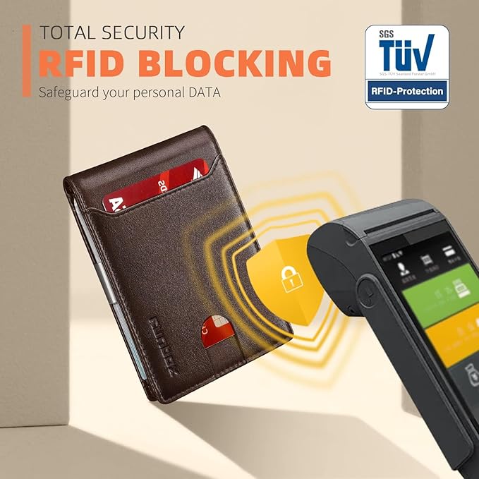 - šš šš šš§šš¢-šš”ššš šššššššš - this slim wallet for men equipped with German Instiute Certified RFID Security technology, a unique metal composite, engineered specifically to block 13.56 MHz or higher RFID signals to protect the valuable information and privacy