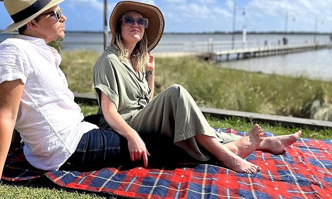 - NEVER FEAR THE WINTER WEATHER AGAIN stay warm and dry in the bleachers while supporting your kids at the football, soccer, hockey, softball, other sports or family event, out in the boat, festival or enjoying the great outdoors; your all purpose blanket has a tough black water and wind resistant polyester backing and red check 350 gsm anti-pill fleece to give you the best cosy feel