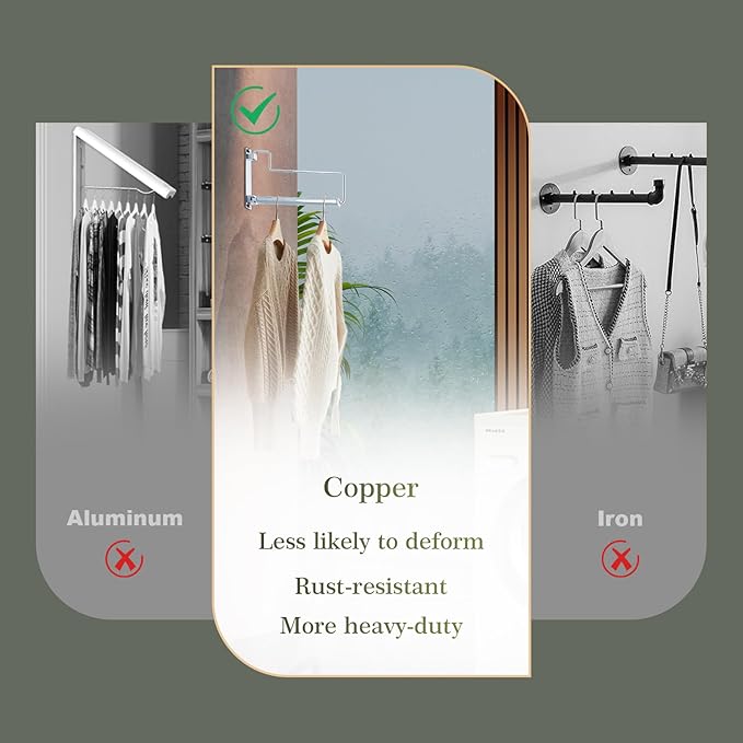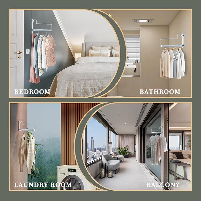 - ✔This is ideal for the space that has in your laundry room or other rooms. It also looks neat and attractive and matches other accessories at home. This hanger rack is made from premium-grade brass and it is sturdy enough to hold jeans, sweaters and jackets even when wet.