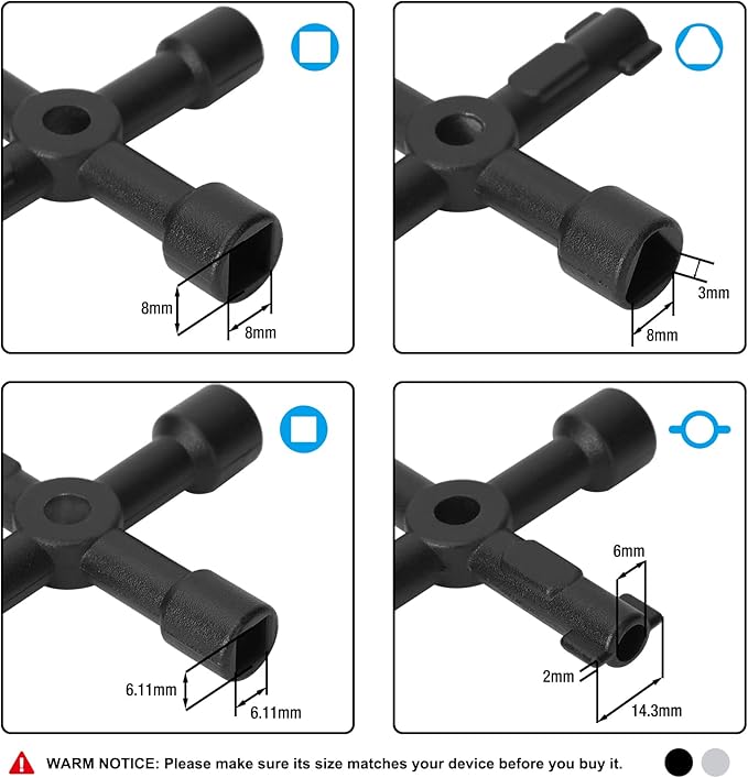 - The 4-way utilities key measures 2.87 x 2.87 x 0.55 inches, proper size for you to carry it hands or put it in your bag