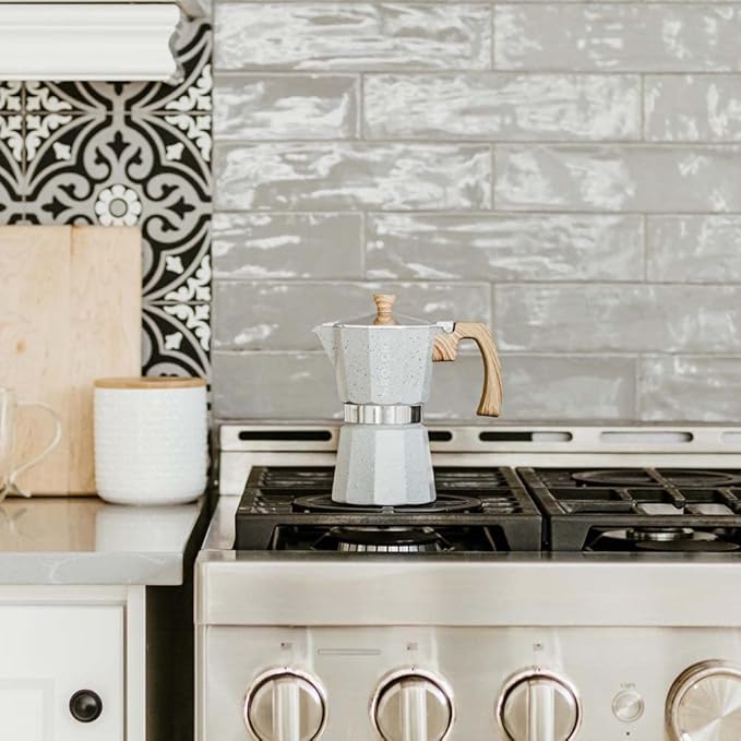 - ⭐ [ Premium Stone finish is 20x more durable than normal paint ] The Milano Stone series has a premium stone finish which is 20x more durable than ordinary enamel. This finish will maintain longer than other paints and has a hand applied specked paint. So every moka pot is slightly different than the other.
