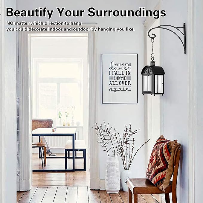 - ?Œ¼Fashion & Retro Design: Primitive curls and swirls design with country look, black coating give them an elegant and retro feeling, which will make your courtyard more beautiful and charming. The black appearance of the outdoor hanging brackets not only matches well with the wall, but also with the hanging decorations.