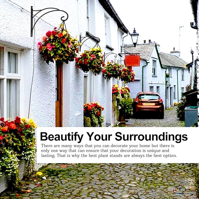 - ?Œ»Premium Quality: The hanging plant brackets for plants adopt high-quality forging technology, are made of heavy steel and coated with anti-rust material on the surface. They are rust and corrosion resistant, stability, durability and guaranteed. Ideal for install into wood fence posts and indoor walls.