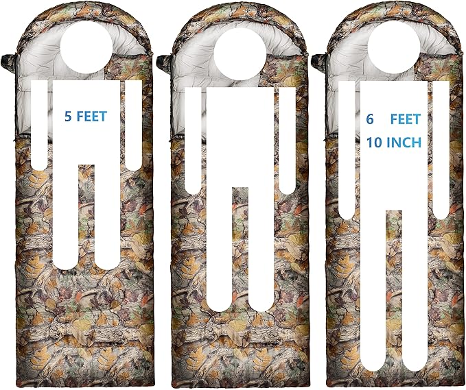0 Degree Winter Sleeping Bags for Adults Camping (450GSM) - Temp Range (5F–32F) Portable Waterproof Compression Sack- Camping Sleeping Bags for Big and Tall in Env Hoodie: Backpacking Hiking 4 Season
