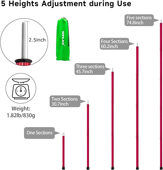 - Perfect Adjustable Design Length Satisfies Your Multiple Height Needs:Each tarp tent pole has 5 sections that extend from 31.3 inches to 74.8 inches in length.The middle SAN LIKE tarp poles are all the same length, and you can choose how many to carry as needed.