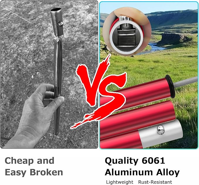 - Tarp Poles Aluminum Provides Easy Way for Carry:Our tent poles are made from 6061 aluminum alloy, it's only 0.76 kg/1.67lbs,with the additional bag make the collapsible pole well to carry,they can be taken to camping, backpacking, hiking or anywhere you want.