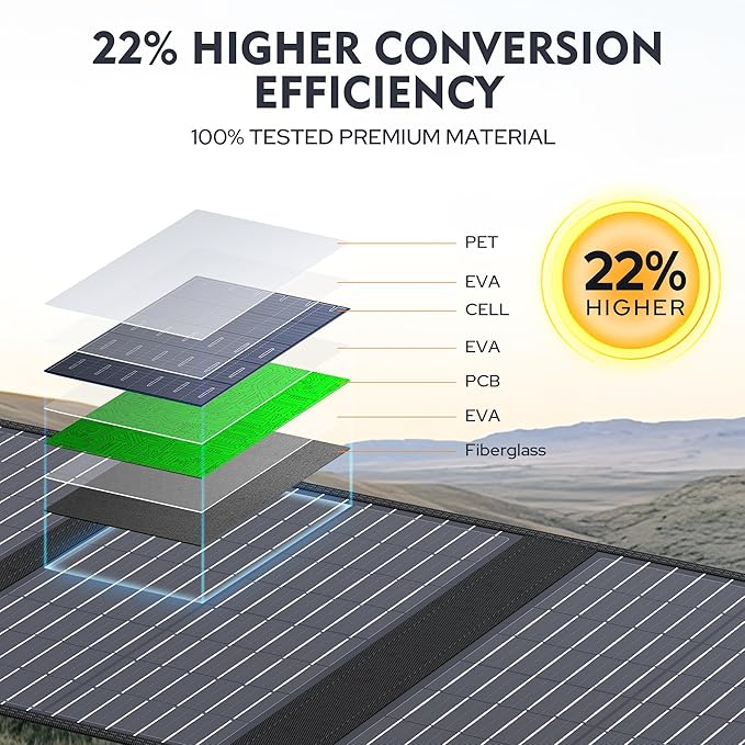 - HIGH CONVERSION EFFICIENCY: With a 22% high conversion efficiency of this 60W monocrystalline solar panel, it produce electricity in a low light outdoor environment.