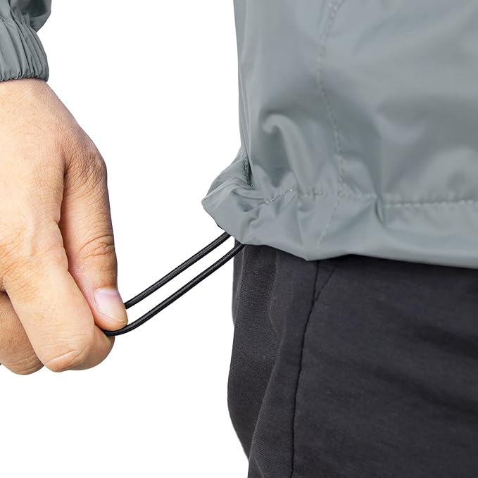 • 【Unique Design】Lightweight lite rain jacket elastic cuffs prevent the rain drops to the cuffs; Adjustable drawcord hood to prevent yourself from being wet; The hem contains elastic rope for warmth and keep you dry. Suitable for casual wear, outdoor sports, outdoor work, traveling, cycling, hiking, climbing, fishing, camping, hunting.