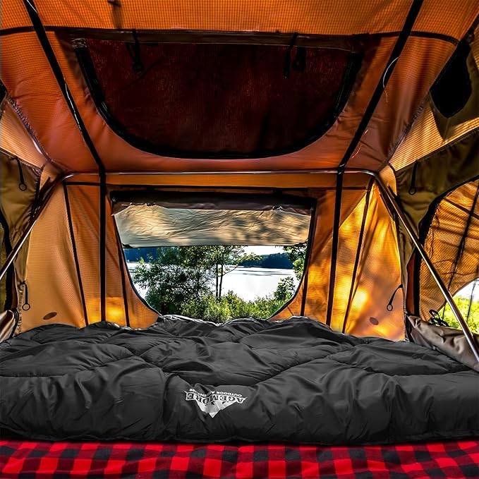 - Super Warm and Comfortable: AGEMORE cold weather double sleeping bag is perfect for family camping in winter, 100% cotton flannel lining and 550GSM high level 3D synthetic fiber filling for optimum warmth insulation. 300T waterproof rip-stop polyester shell prevent damp from entering and stands up for years. A shoulder draft tubes hold the warm air inside and warm mummy hood with drawstring keep your head warm. Great for camping, backpacking or hiking.