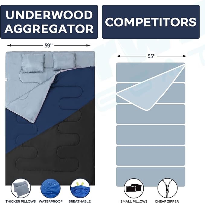 - BETTER CUSTOMER SERVICE: The Underwood Aggregator sleeping bag for men undergoes rigid inspection before its departure from the factory. Should you have any problems with the sleeping bag for 2 person, please don't hesitate to contact our customer support team. We are ready to help and happy to hear from you. Your satisfaction, our responsibility