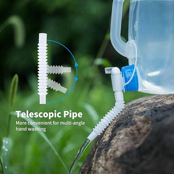 - COMPACT, PORTABLE, AND REUSABLE: This water container is space-saving and lightweight, designed to fold easily for storage. The soft molded handle makes it easy to carry, perfect for outdoor activities such as hand-washing stations, automobile/RV water storage, camping, hiking, backpacking, hunting, fishing, BBQs, picnics, parties, and festivals. It’s also ideal for household and garden use.