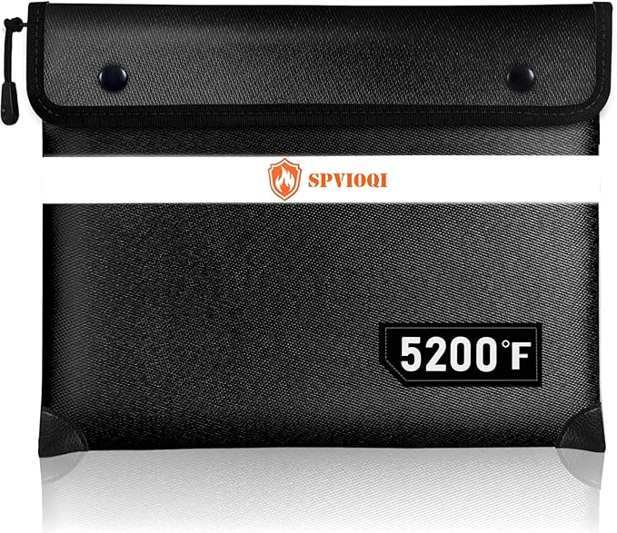 - 5200°F TOP FIRE PROTECTION: The Upgraded SPVIOQI fireproof document bag has passed Global Flammability Standards (US labs) and Vertical Combustion Testing (SGS UL94 V-1); Recommended by professional firefighters and tested in the most demanding environments; The fire proof bag can withstand ultra high temperatures up to 5200°F; It is worth mentioning that the reflective strip of fire bag has high visibility at night, which is convenient for you to quickly find in a fire