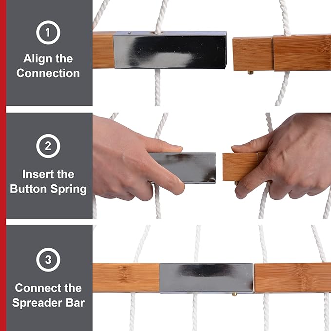 - Sturdy Spreader Bar: The spreader bars are environmentally friendly and strong. It could prolong the service life of your outside hammock, which make your hammock be a good companion in your life