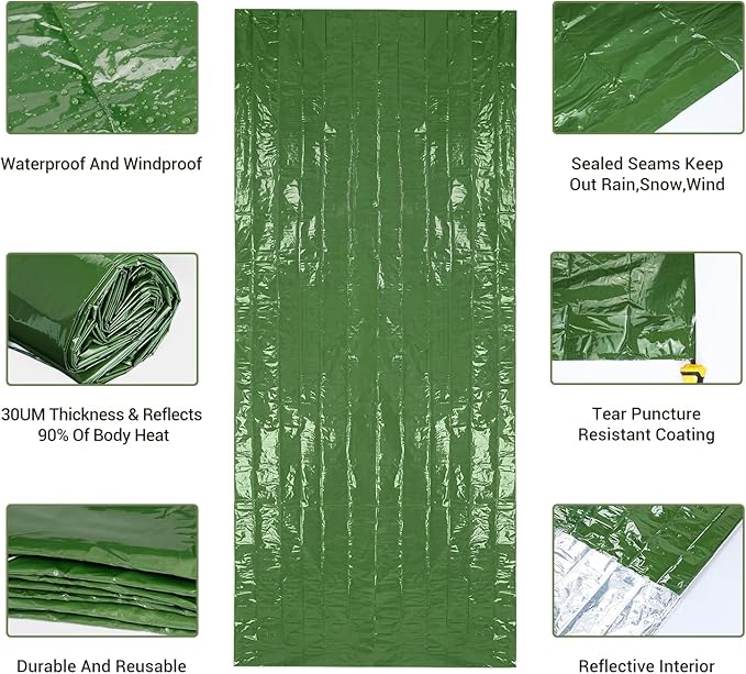 - A Life Saver in Emergencies: This Emergency Sleeping Bag is an invaluable asset when the chips are down. It's a must have for emergencies such as disaster, and automobile danger, and more--you'll never know when it'll come in handy. It also can serve other functions such as an emergency blanket, ground cover, rescue or distress beacon, poncho, rain tarp or sun shade