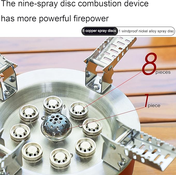 - [New Upgrade Copper Furnace Core] — The backpacking stove is made of high-quality stainless steel and copper, stands high temperature and weight, anti-corrosion, strong oxidation resistance. The center of the camp stoves made of copper material, which will not burn the furnace core to create a break. The collapsible bracket is anti-skid and high strength, bearing capacity almost 75KG.