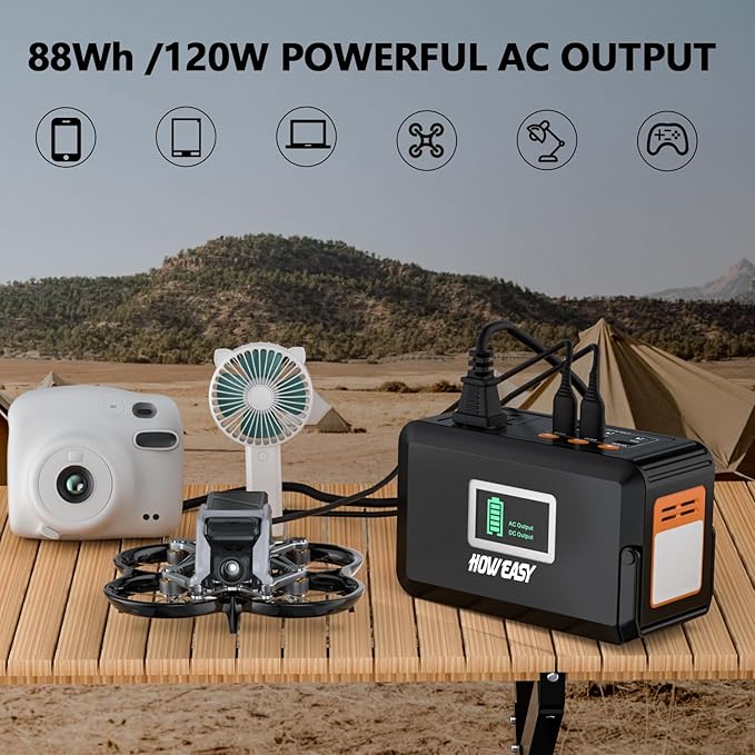 - High Capacity & power bank:portable power bank with AC outlet 88Wh/24000mAh compatible with 99% of electronic products and equipment on the market, very suitable for camping, climbing, cycling, traveling, RV trip, home use, outdoor activity, deals with power outages, hurricane emergency.