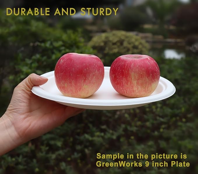 GreenWorks 100 Count 7“ Heavy-duty Compostable Plates, Unbleached Biodegradable Bagasse and Bamboo fiber Paper Plates