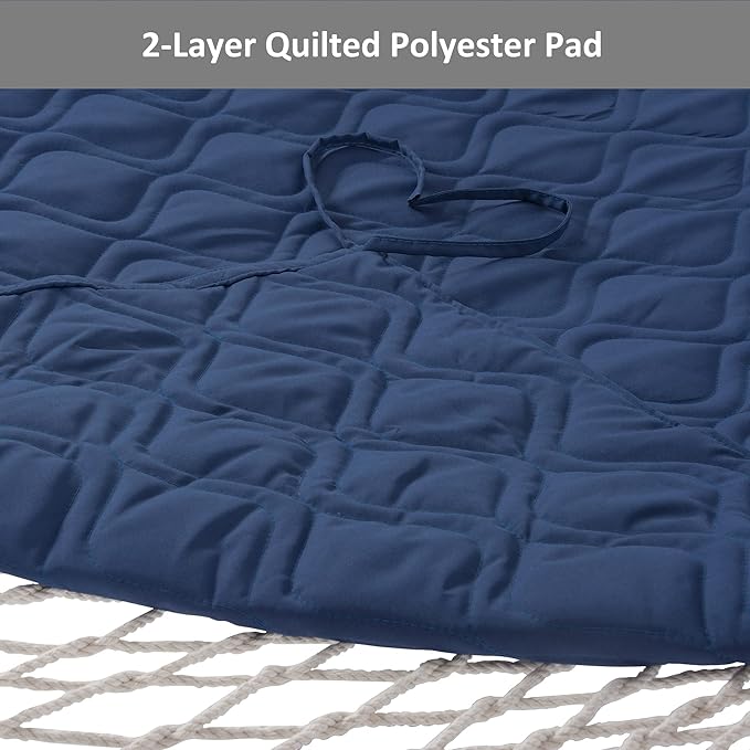 SUNCREAT Two Person Hammock with Stand, Heavy Duty Backyard Hammock and Stand, Navy Drops