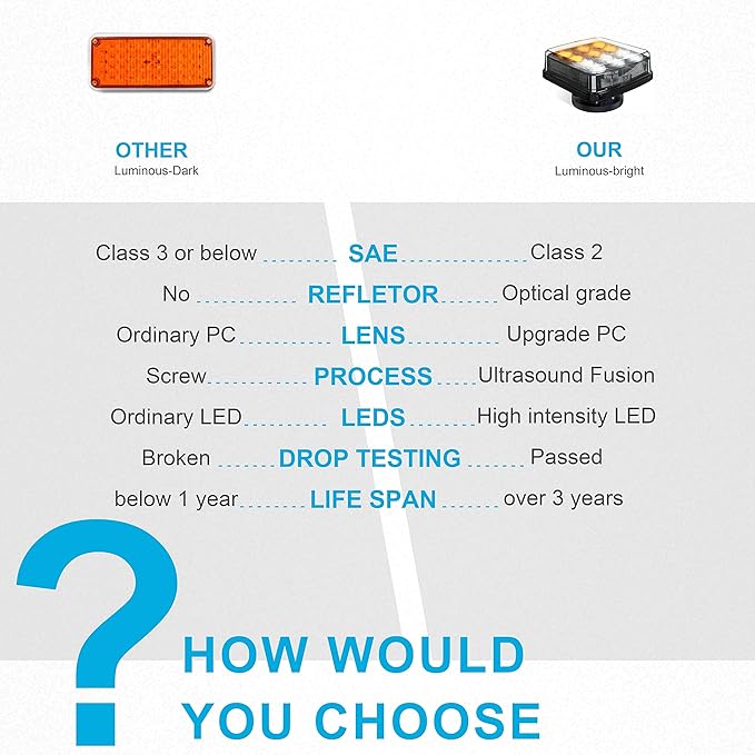 - 【Excellent waterproof rating】The emergency strobe lights are manufactured with glue filling process to protect the PCB board and LEDs, coupled with advanced ultrasonic fusion technology to make the product connection edge thoroughly fused to achieve the best waterproof effect.
