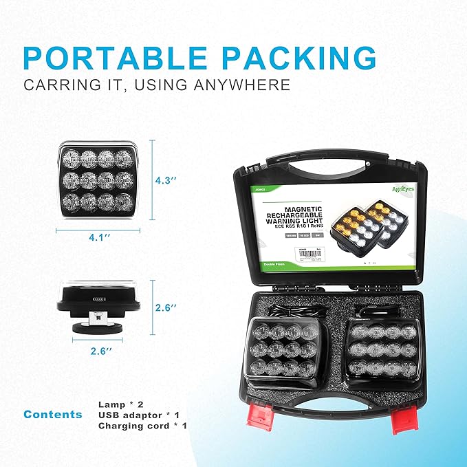 Agrieyes 2Pcs Wireless Emergency Strobe Lights for Trucks,Vehicles, Rechargeable Amber Led Beacon Lights with Super Magnetic, 12-24V, Plow Flashing Hazard Warning Light for Tractor,Automotive