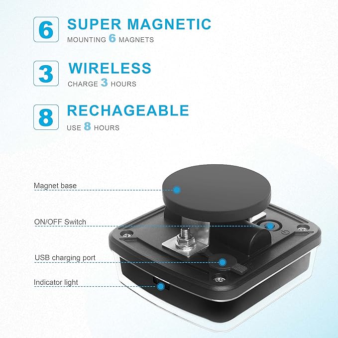 - 【Longer-lasting power】With strong magnetic base, used on trucks, engineering vehicles, agricultural machinery, etc. Once full charge for 8 hours used.