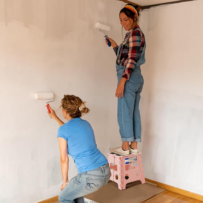 - 【Foldable Step Stool Widely Use】The beauty of folding stool is, it can be used for multi purposes. Being a portable, it is suitable for classroom, office, bathroom, kitchen, camping, repair, fishing, line up, paint, garden, travel, outdoor and more.