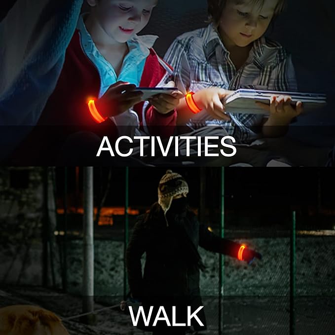 - 【Multi-Usages】:Nicely visible while walking, riding, running, or on a motorcycle at night. Secure enough that you don't have to worry about it flying off at higher rates of speed. Also perfect for dog collar when night walking. Great party supplies. Enough for you to share with your families and friends. Kids always love this light up bracelets.