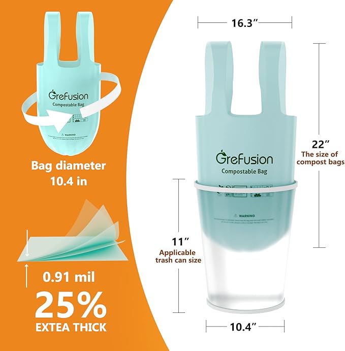 - 【STURDY COMPOST BAGS &UPDATE SUPER THICK 】We are Proud of update the design of GreFusion compost bag thick for get carry weights,As kitchen trash can bags are able to withstand a heavy load of wet food waste and hot coffee grounds without any ripping.and sturdy enough with less chance of perforation by sharp leaves. keep a grefusion compost bin bags come in the home and go with confidence to stop the mess .