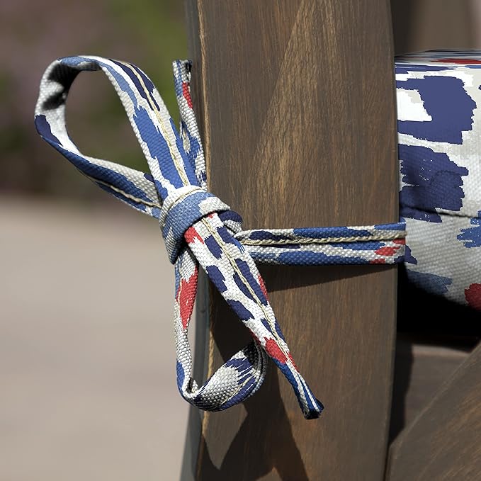 - ARDEN Indoor/Outdoor Seat Cushion or Rocking Chair Cushion fits most standard dining, chair, or rocking chairs. It measures 19 in W x 18 in L x 2.5 in D. and includes 2 sets of ties to keep your cushion firmly in place.