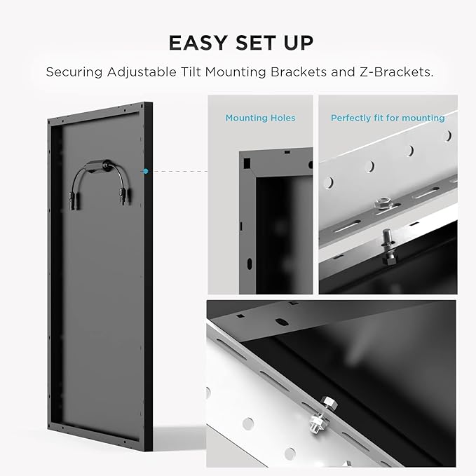 - Easy set up - Designed to fit in any solar panel kit with ease. With pre-drilled holes, mounting and securing is easier than ever.(Any mounting accessories sold separately on Brand Store)