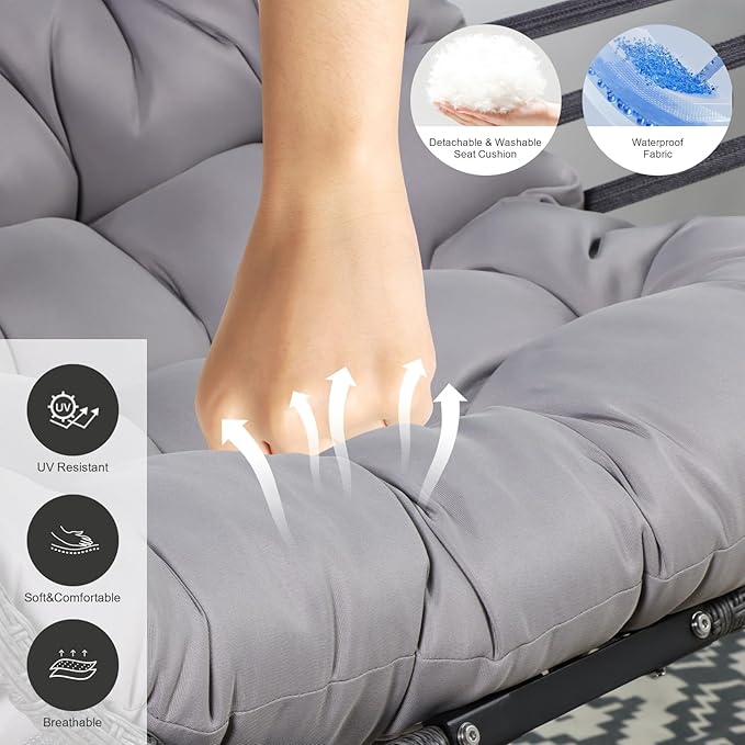 PRIVATE GARDEN Indoor Outdoor Hanging Egg Chair Wicker Hammock Swing Chairs UV Resistant Cushion Folding Aluminum Basket Frame for Bedroom Balcony Patio 330lbs Capacity