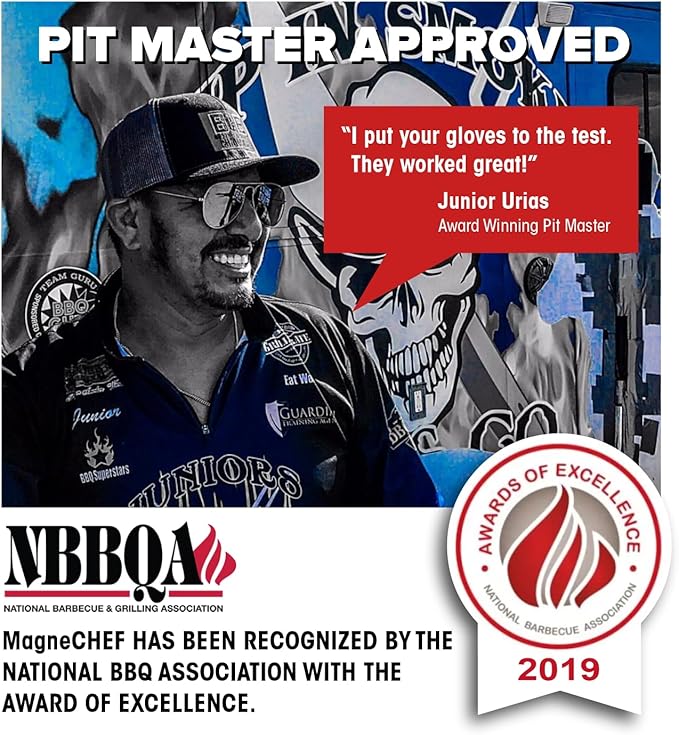 - Extreme 932°F Heat Resistance: Heavy-duty food-grade neoprene construction protects hands from searing temperatures up to 932°F (500°C). Ideal for high-heat grilling, smoking, campfire cooking, or even handling hot coals and cast iron – these gloves empower pitmasters to conquer extreme heat safely.