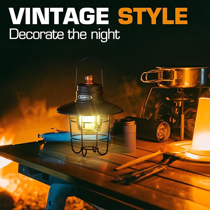 - [550 Lumens & Three Light Modes] With a brightness of up to 550 lumens, Everbrite camping lantern provides 360-degree lighting for your camping. This vintage camp lantern has three modes: filament light on, LED light on, and filament+LED on, which can create different camping atmospheres.
