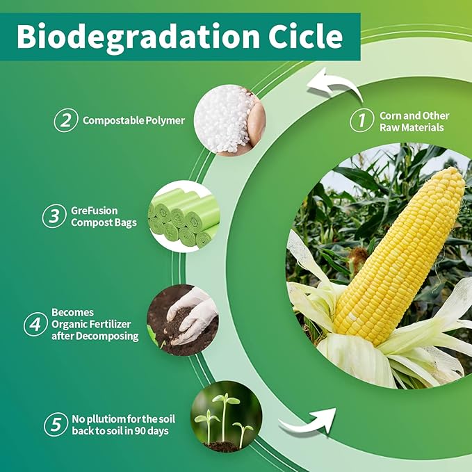 - [Biodegradable Trash Bags] - Biodegradable garbage bags use the most advanced biodegradation technology and are made from 100% natural ingredients. Eco friendly trash bags are non-toxic, harmless, and can decompose, contributing to the protection of the earth's environment.