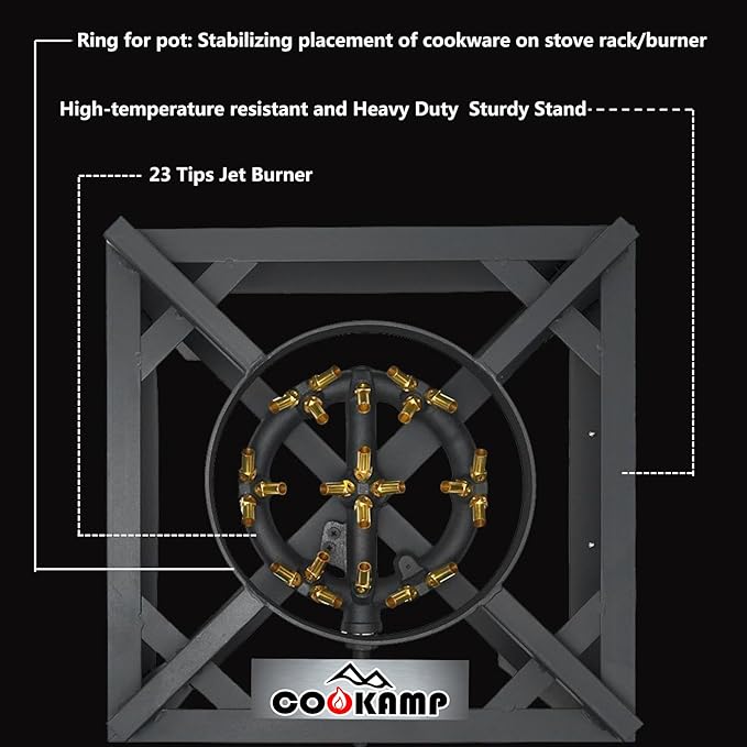 Jet Burner 23 Tips Outdoor Propane Gas Cooker with 0-10 PSI Adjustable Regulator and Steel Braided Hose SA1723