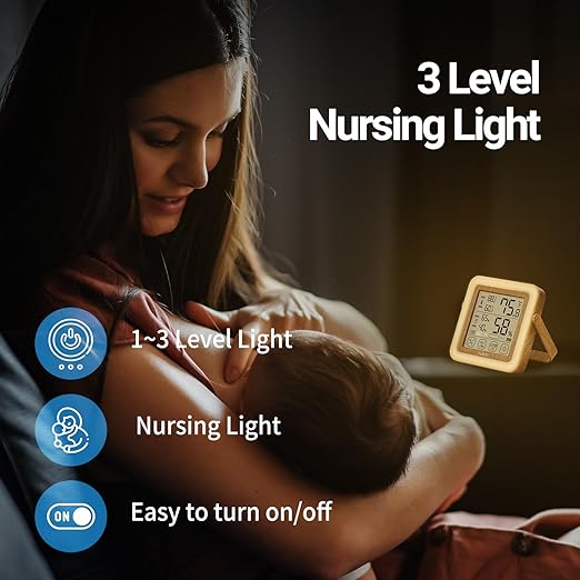 - 🌟3 Level nightlight brightness : You can adjust brightness of the nightlight to get the perfect light setting in the dark You can use the stand as a handle to carry the nightlight with you. Now you don't have to buy a hygrometer and nightlight separately. Bright back light helps to see the screen clearly in the dark.