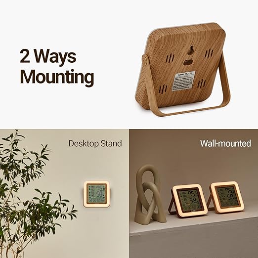 HuBDIC HubiBaby Digital Hygrometer Indoor Thermometer Humidity Meter Room Thermometer, Humidity Monitor for Home, Bedroom, Baby Room, Office, Greenhouse, Cellar, Portable Nightlight (Light Wood)