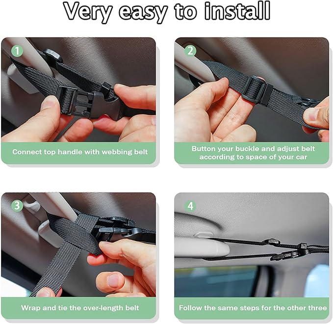 - Quick Installation: The Cwokarb car net pocket has four handlebar mounting buckles for securing the car organizer net. You just need to hold the fasteners and tighten the straps