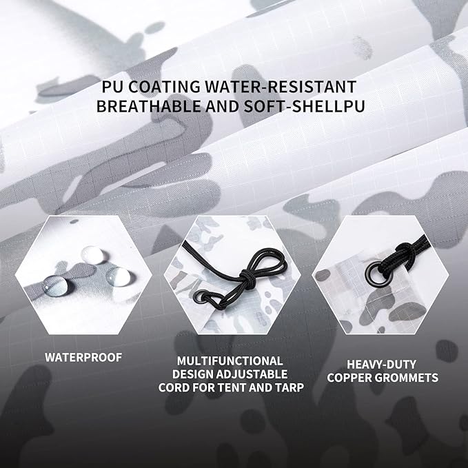 - 【MULTIFUNCTIONAL】Configure 7 metal grommets for more possibilities, used to tie cord connections. you can use it as a tarp to cover your tent, or prop it up above as a sunshade.